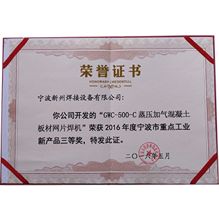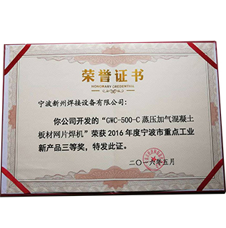 寧波市重點(diǎn)工業(yè)新產(chǎn)品三等獎(jiǎng)